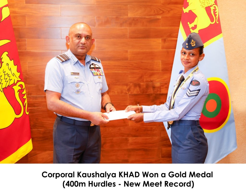 එසේම පදක්කම්ලාභී ක්රීඩක, ක්රීඩිකාවන් 06 දෙනා සඳහා කෝප්රල් නිලයට උසස්වීම් ප්රධානය කිරීම හා මුදල් ත්යාග පිරිනැමීම ද තරඟයට සහාබාගී වු අනෙක් ක්රීඩක ක්රීඩිකාවන් තිදෙනා සඳහා මුදල් ත්යාග පිරිනැමීම ද ගුවන් හමුදාපතිතුමා විසින් සිදුකරන ලදි.