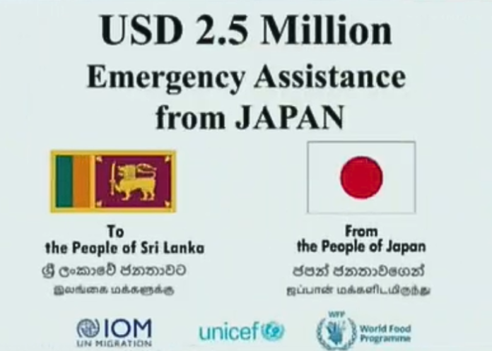 ජපන් රජය ශ්රී ලංකාවට ඇමෙරිකානු ඩොලර් මිලියන 2.5ක හදිසියේ ප්රධානියක් ලබාදීමට තීරණය කර තිබෙනවා. මේ අතර “Rebuilding SriLanka” ශ්රී ලංකා අරමුදලට ද තවදුරටත් ආධාර ලැබෙමින් පවතින බවයි වාර්තා වන්නේ.