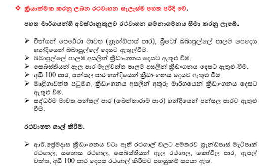 අද(25) දින රාත්රී 7.00ට මාළිගාවත්ත ආර්.ප්රේමදාස ජාත්යන්තර ක්රීඩාංගණයේදී පැවැත්වීමට නියමිත 2026 – T20 ලෝක කුසලාන ක්රිකට් තරගාවලියේ ශ්රී ලංකාව හා නවසීලන්තය අතර තරඟය නැරඹීම සඳහා දේශීය හා විදේශිය ප්රේක්ෂකයින් විශාල ප්රමාණයක් පැමිණෙතැයි අපේක්ෂා කෙරෙනවා. එම තරඟයට අදාලව රථවාහන සැලැස්මක් ක්රියාත්මක කිරීමටයි කොළඹ රථවාහන කොට්ඨාසය විසින් සැලසුම් කර ඇත්තේ.