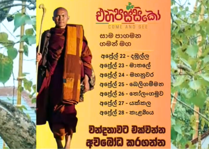 සාම පා ගමනට සහභාගි වීම සඳහා පූජ්ය පඤ්ඤාකර හිමියන් ඇතුළු භික්ෂූන් වහන්සේ හත් නමක් අද අලුයම දිවයිනට වැඩම කළා. ඒ ආලෝකාද සමඟයි. සාම පා ගමන හෙටින් ආරම්භ වීමට නියමිතයි.